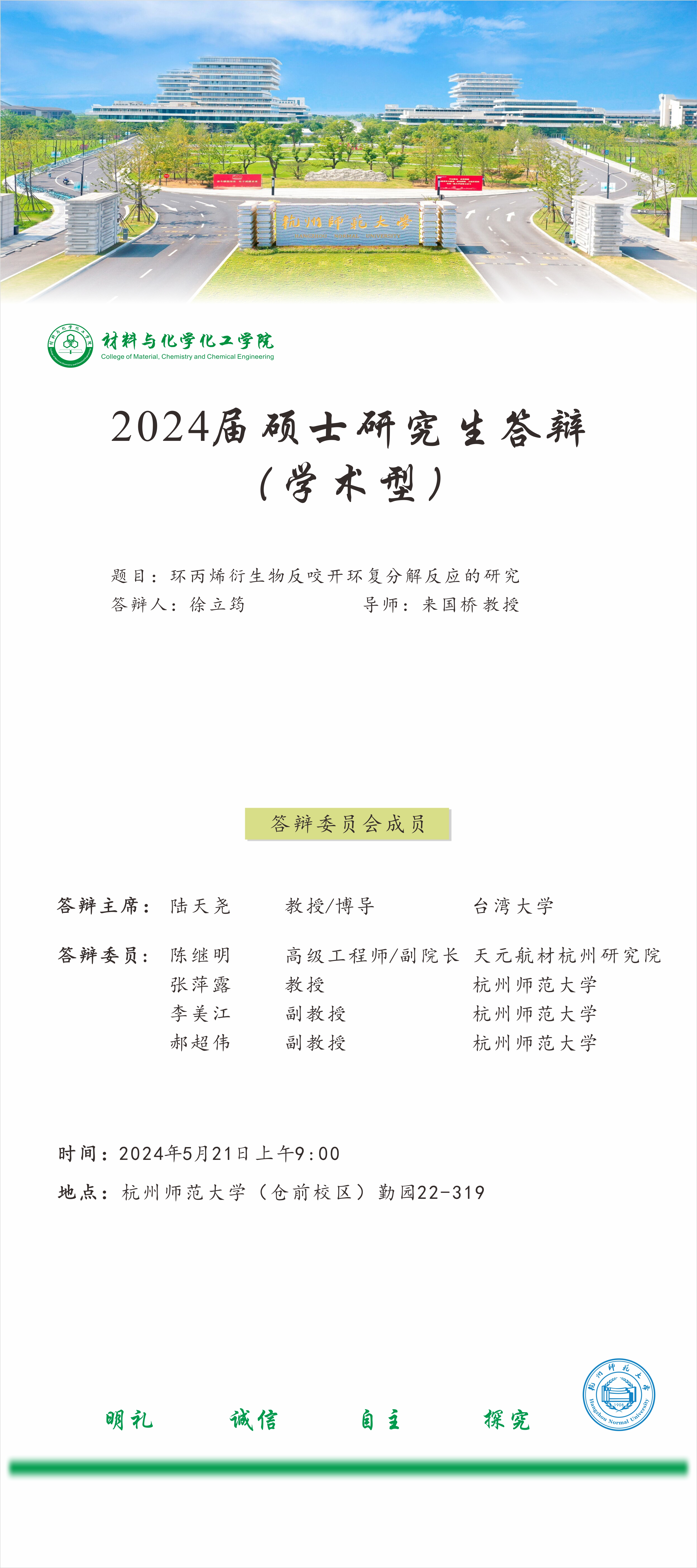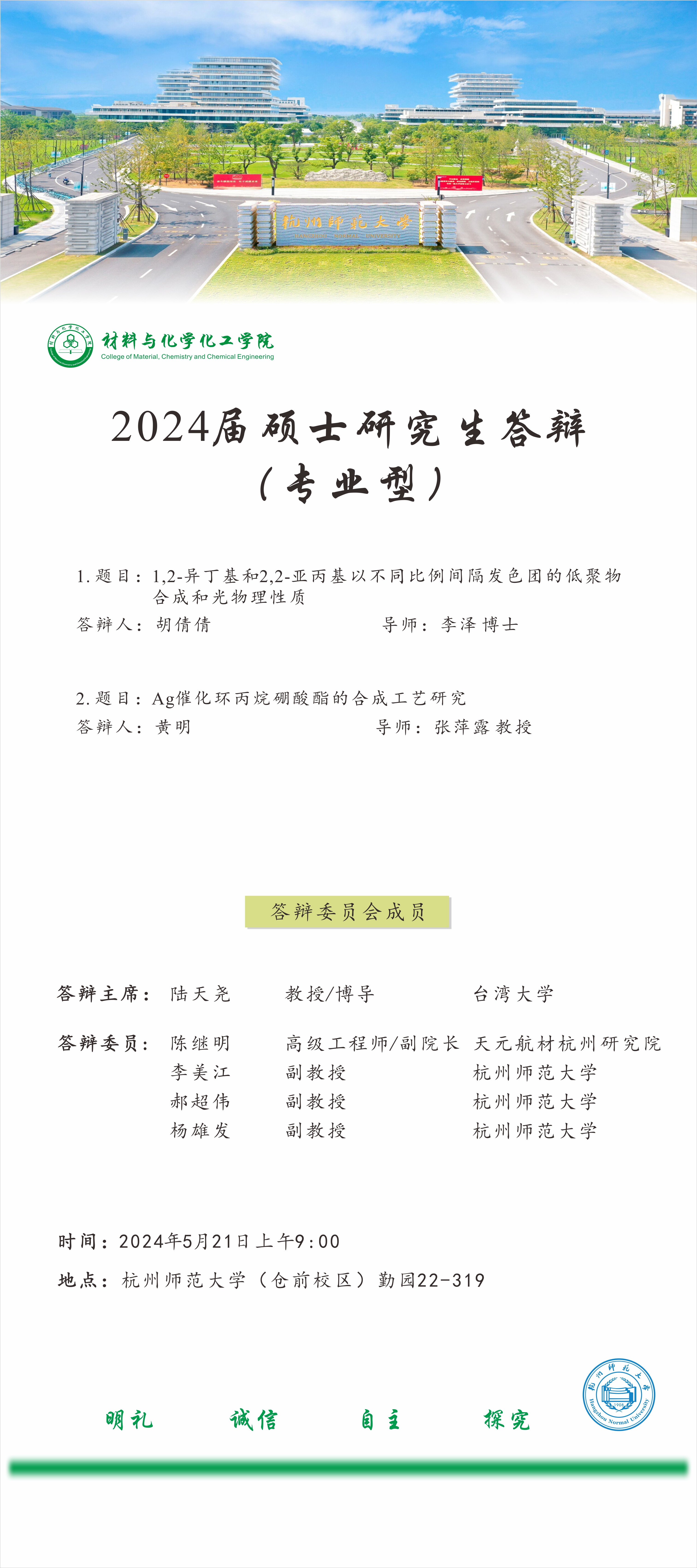 2024届硕士研究生毕业论文答辩安排(5月21日-1)