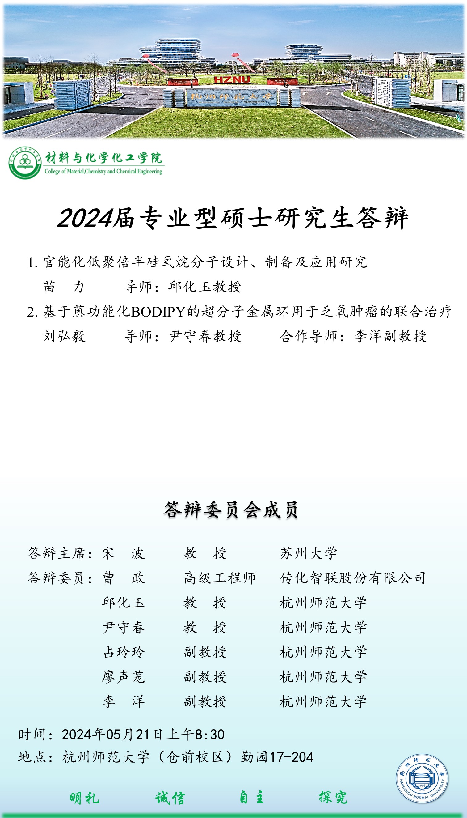 2024届硕士研究生毕业论文答辩安排(5月21日-4)