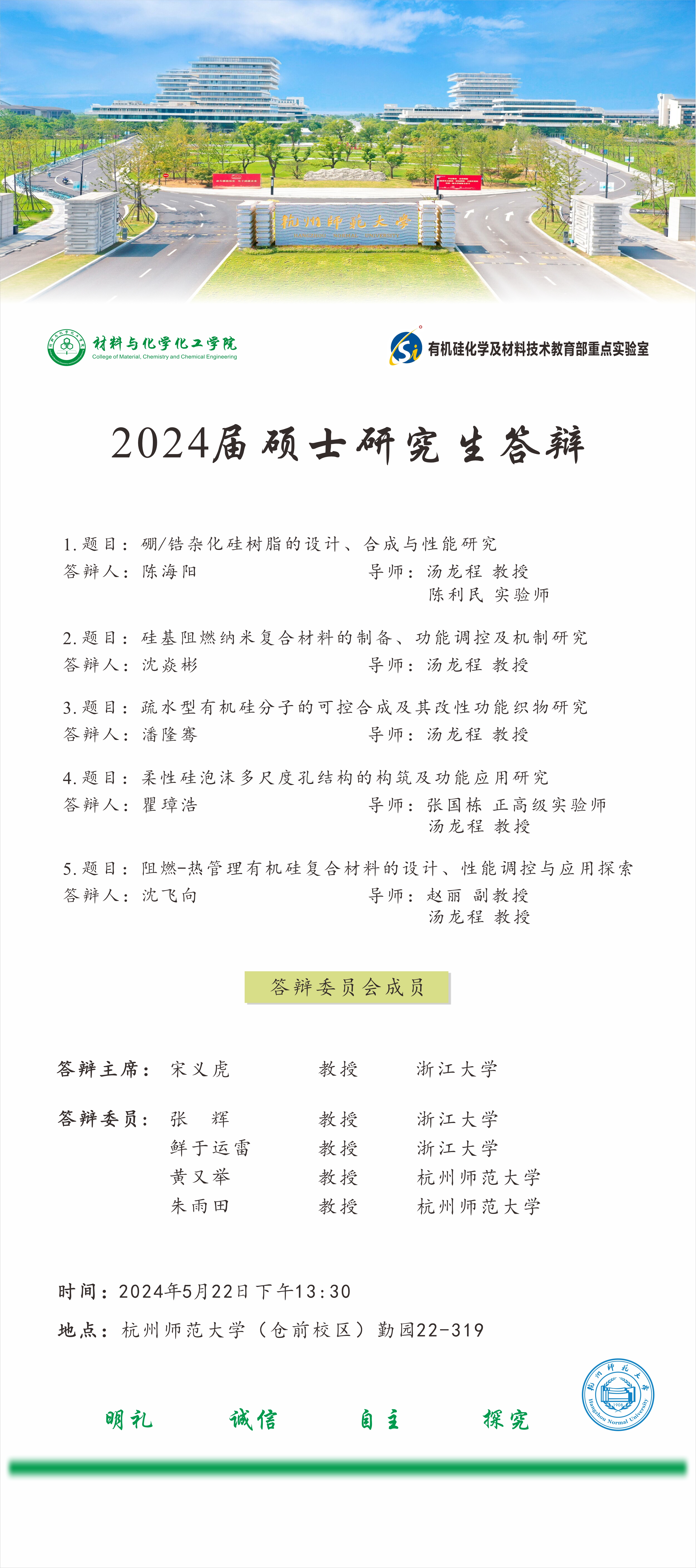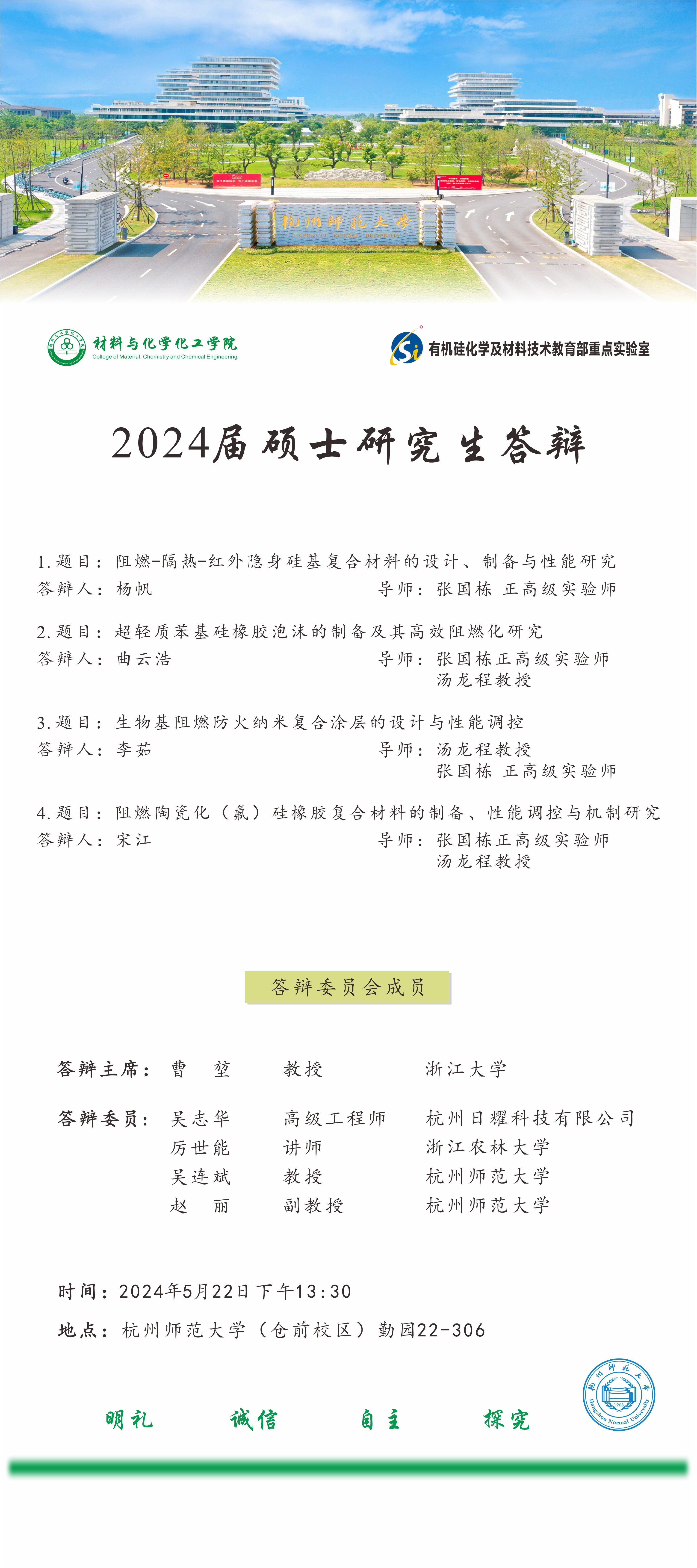 2024届硕士研究生毕业论文答辩安排(5月22日)