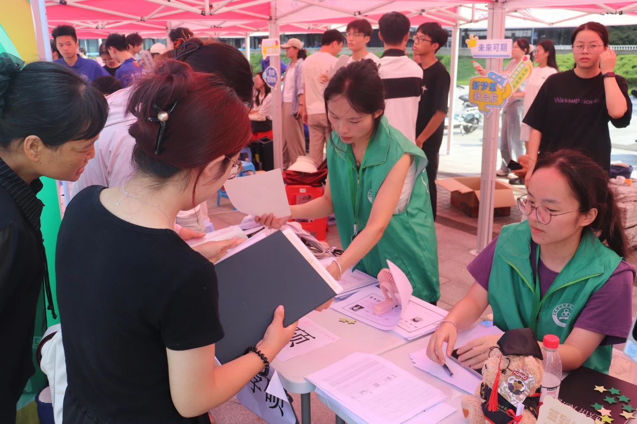 学院院长章鹏飞,院党委书记江齐里,副院长黄又举,院党委副书记管庆江,“十佳导师团队”代表曹君教授、邵欣欣教授到达迎新现场并陪伴志愿者一同工作,与新生及家长亲切交流,传递着学院的关爱与期望,激励着新生们勇敢追梦,砥砺前行。