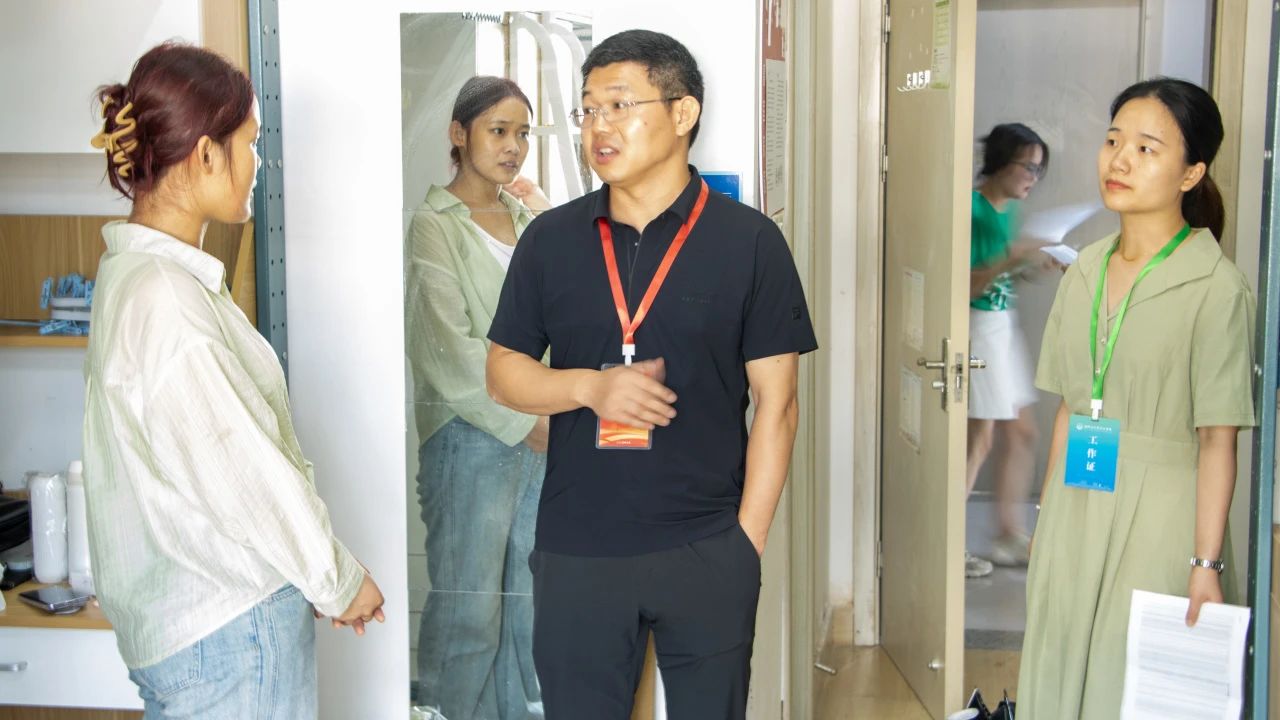 热情洋溢的迎新志愿者们各自分工,为新生们提供细致的方向与流程指引、行李寄存与搬运、采访拍照等服务。他们热情引导、耐心服务、密切配合、协同分工,展现着新时代青年学生的风采。“咔擦”一声,定格了爱与陪伴的难忘瞬间,更是在新生们探索校园的同时留下独特的“材化初印象”。