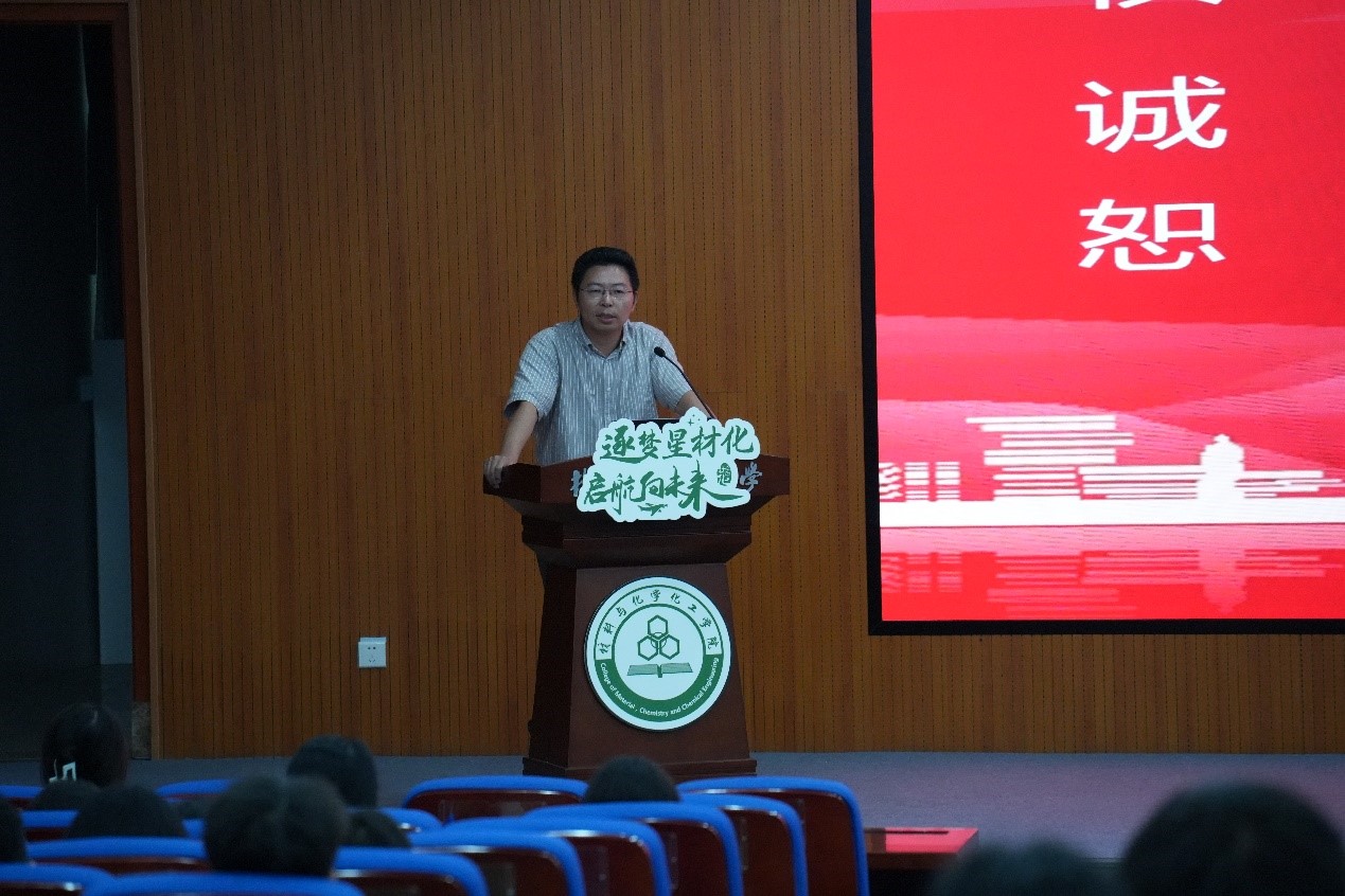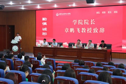 章鹏飞发表了题为“心怀‘国之大者’,勇于探索创新”的讲话,代表学院向各位新同学的到来表示热烈的欢迎,向鼎力支持和帮助同学读研的家人表示最诚挚的谢意。章院长通过对学院的悠久历史、师资力量、科研水平以及科研成果的简明介绍,希望同学们能够在jdb电子 浓厚的学术氛围下努力拼搏,探索创新。他提出了三点希望和要求:第一,心怀“国之大者”,勇担时代重任。“士不可以不弘毅,任重而道远。”同学们要心怀“国之大者”,让青春在以中国式现代化全面推进强国建设、民族复兴伟业中绽放光彩。第二,思考探索研途,创新引领未来。“学而不思则罔,思而不学则殆。”创新始终是一个国家、一个民族发展的重要力量,是百年变局中的“关键变量”,也是研究生学习的最重要驱动力。第三、坚持守正创新,修身立德成长。既要学知识、学本事,又要学做人、学处世,坚守学术底线,养成自律习惯,学会时间管理和团队合作,共同攻克科研难题,勇攀科技高峰。