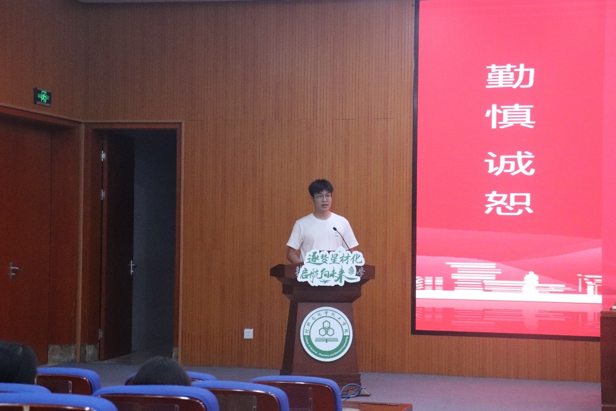 新生代表王康在发言中带领大家思考了从本科生到研究生身份转换后的区别,勉励自己和同学们提高自主性和创新性,学习师者德行,团结同门,在学术研究和经营生活中开创美好未来。