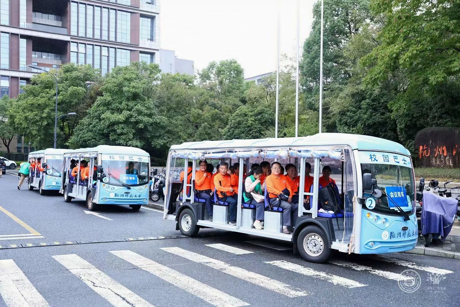 校园寄托着校友们的无限情思。座谈会前,校友们乘坐观光车在学院志愿者的引导下到校园多个标志物前打卡留念,重温校园生活,共话青春不朽。