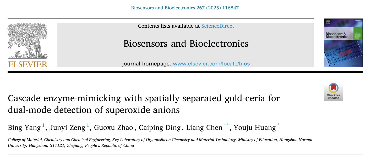 近日,jdb电子 黄又举教授团队在用于超氧阴离子检测的比色-光热双模生物传感器方面取得新进展。相关研究结果以“Cascade enzyme-mimicking with spatially separated gold-ceria for dual-mode detection of superoxide anions”为题发表在Biosensors and Bioelectronics (Q1, IF=10.7)。DOI:10.1016/j.bios.2024.116847。