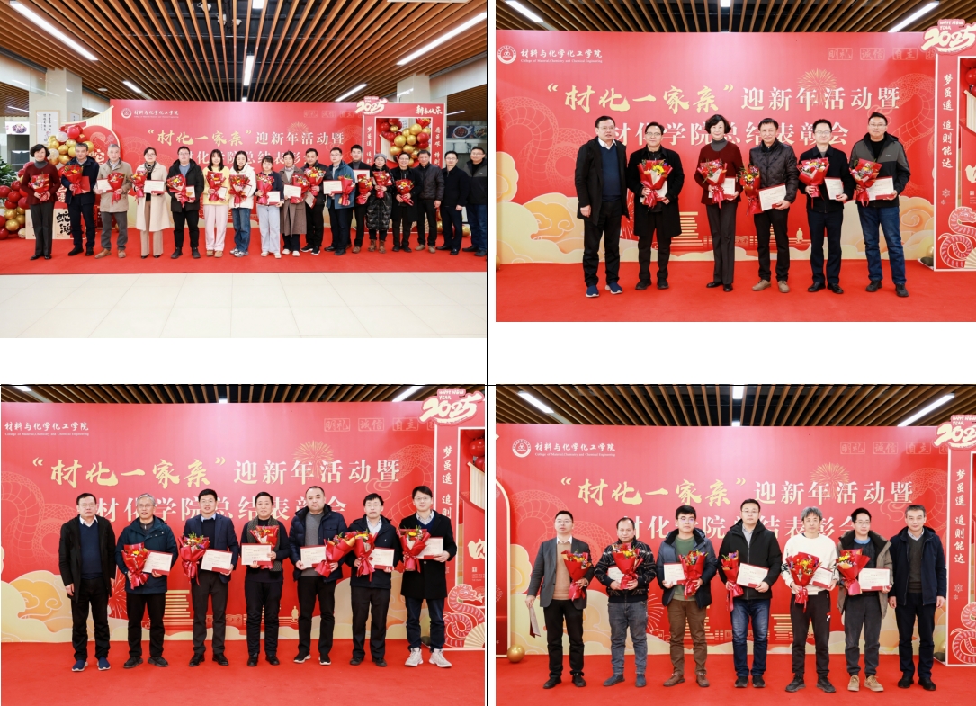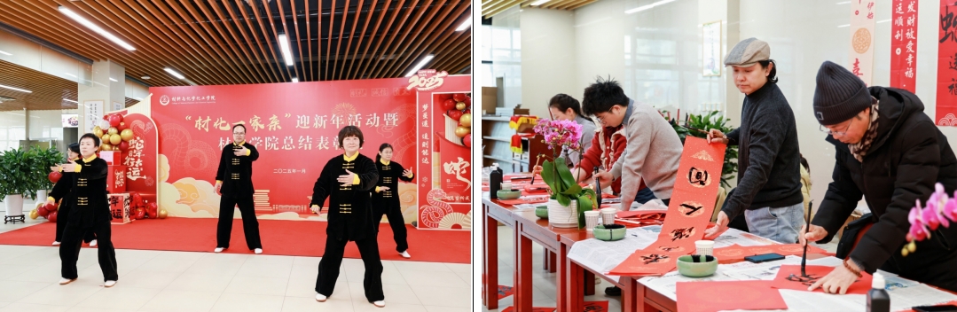 学院对2024年加入材化大家庭的“启航材化人”进行了热烈欢迎,对2024年荣休、调离学院的“功勋材化人”进行了感谢致敬,对2024年在各领域取得优异成绩的“卓越材化人”、勤恳踏实工作的“勤勉材化人”进行了表彰颁奖。表彰会后,大家边包饺子边欣赏材化人丰富精彩的才艺表演,现场气氛热烈欢快。学院还邀请了校书画协会的老师现场泼墨为老师们书写福字、春联,看着优美的书法,老师们纷纷点赞并表示感谢。
