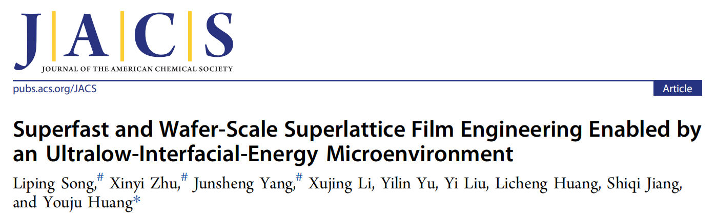 近日,jdb电子 黄又举教授带领的纳米生物传感器团队在界面自组装构筑大面积超晶格膜材料领域取得突破,相关研究工作以“Superfast and Wafer-Scale Superlattice Film Engineering Enabled by an Ultralow-Interfacial-Energy Microenvironment”为题发表在Journal of the American Chemical Society (Q1, IF=14.5) 上。DOI: 10.1021/jacs.4c17238。