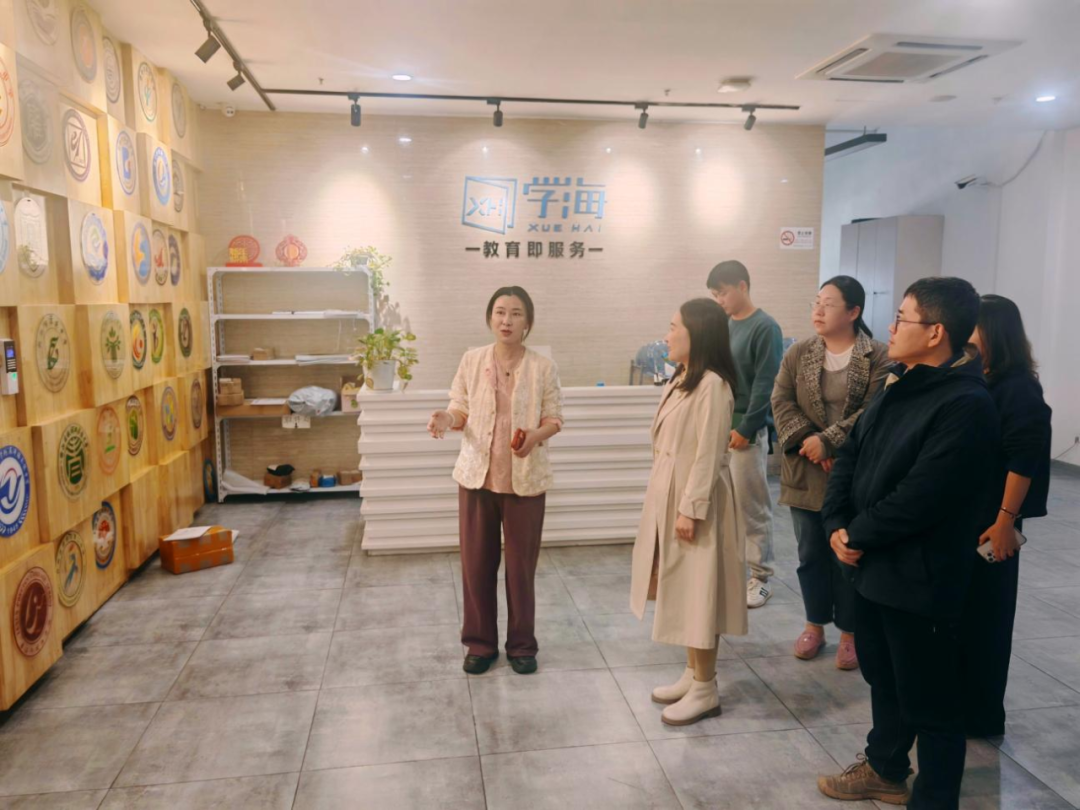 座谈会前,学海教育副总经理林海霞带领来访一行参观了公司的办公区域和jdb电子展示区。