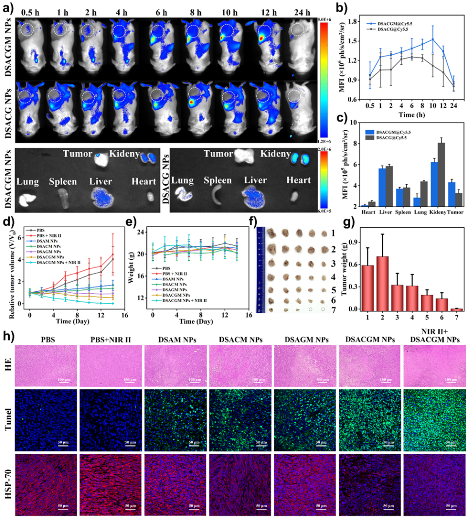 图 3. DSACGM NPs在4T1荷瘤小鼠模型中的体内疗效。