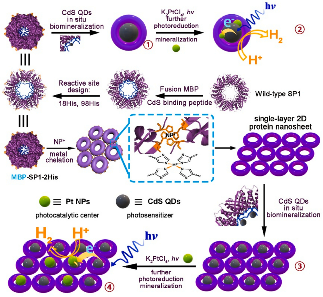 图1. 蛋白质组装及其原位生物合成的光催化系统构建策略