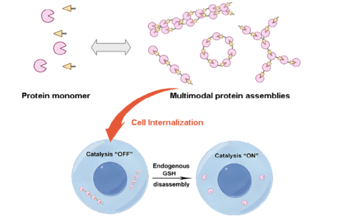 蛋白质可通过“效应”分子的存在以不同方式组装,从而实现对蛋白质结构和功能的调控。然而,生物分子功能的调控复杂且尚未完全被理解。实现规则的超分子蛋白质组装通常需要精确设计具有特定几何和对称性的蛋白质,对设计的准确性要求极高。