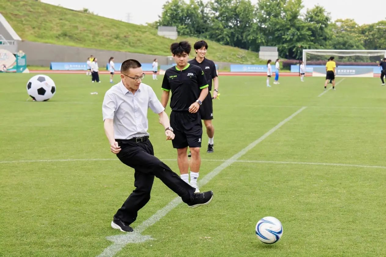 随着校党委书记郭东风为男子组足球队开球时黑白足球划出一道弧线,jdb电子