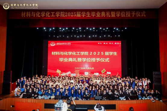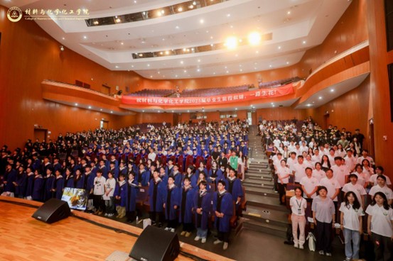 章鹏飞代表学院致辞,他向全院547名2025届本研毕业生送上热烈祝贺和美好祝愿,衷心感谢师长、家长和亲友们的辛勤付出和陪伴。他深情回顾了同学们在校期间的奋斗与成长,与学校和学院一起在青春的画卷上勾勒出最迷人的风景,实现了同频共振、双向奔赴。他以《越山丘 藏岁月 书华章》为题给毕业生讲授在校的“最后一课”,提出三点期望:一是越山丘,淬炼成长锋芒,在跨越挫折中成长成熟,收获成功与领悟;二是藏岁月,定格温暖时光,珍惜身边温暖瞬间,从中汲取前行力量;三是书华章,绘就出彩人生,守护心中热爱,在坚守中书写属于自己的精彩篇章。希望在未来的人生道路上,以无畏为剑、珍惜为舟、热爱为帆,将理想信念和家国情怀转化为感恩奋进的力量,融入个人成长和时代发展的澎湃浪潮,在祖国大地上继续书写属于材化人的才华与荣光!