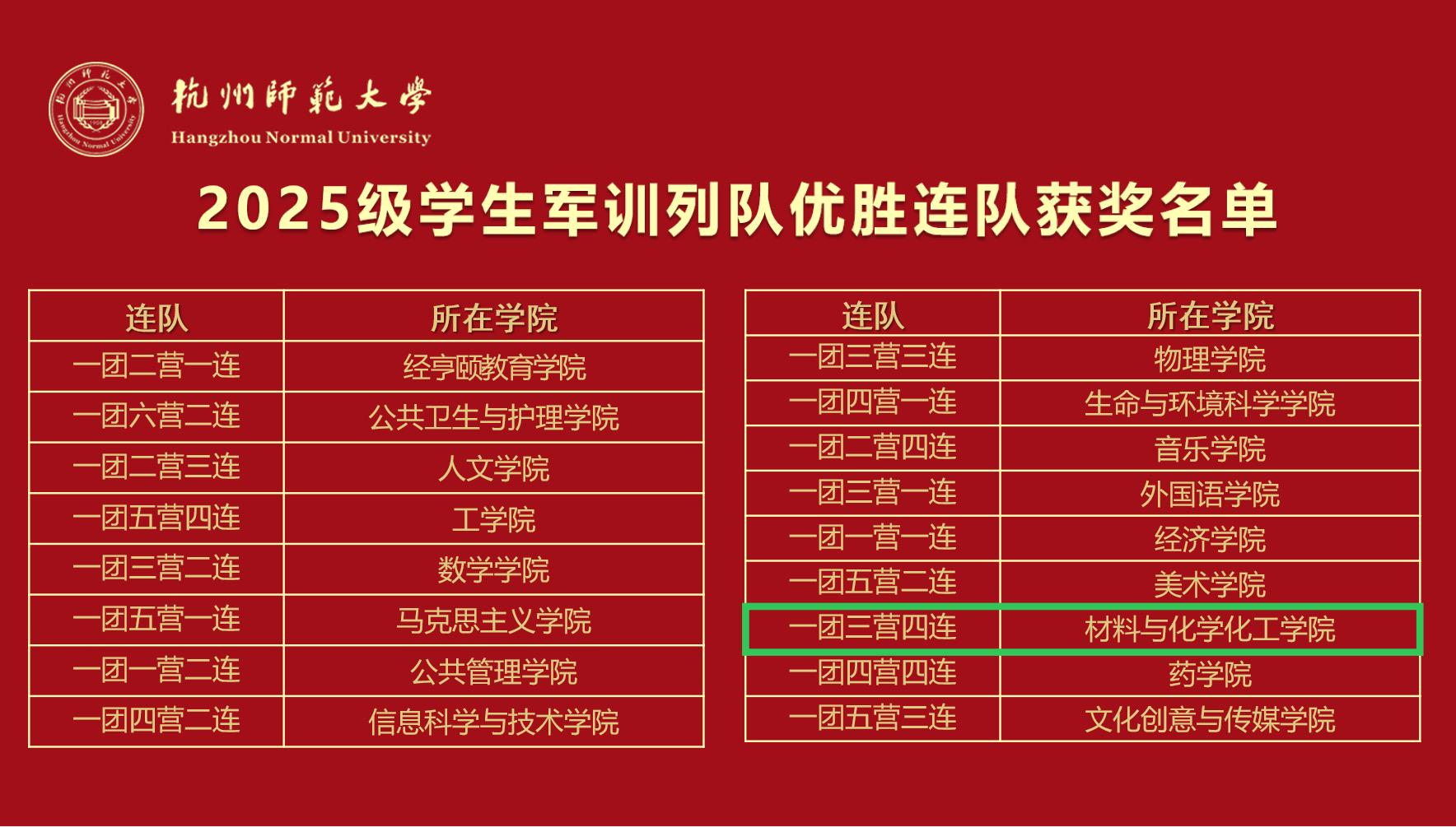 光阴荏苒,时节不居。2025年9月21日,我校在艺术中心1200座召开2025级学生军训总结表彰大会。在过去的两周时间中,材化学子经历分队队列动作、战场医疗急救、轻武器射击、紧急集合等综合性训练,他们的身影也出现在拔河比赛、红歌合唱比赛之中,诠释着材化人的担当。在本次军训活动之中,jdb电子 一团三营四连荣获军训宣传优胜联队、军训列队优胜联队、军训内务优胜联队、军训合唱比赛三等奖、军训拔河比赛第七名等多项荣誉。