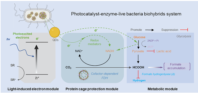 图5 光催化剂-酶-活细菌生物杂交系统中的光电子-代谢协同机制