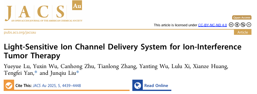 近日,jdb电子 刘俊秋教授团队在光控人工离子通道用于肿瘤治疗领域取得重要突破。相关研究成果以题为 “Light-Sensitive Ion Channel Delivery System for Ion-Interference Tumor Therapy” 发表于国际化学领域顶级期刊 JACS Au上。