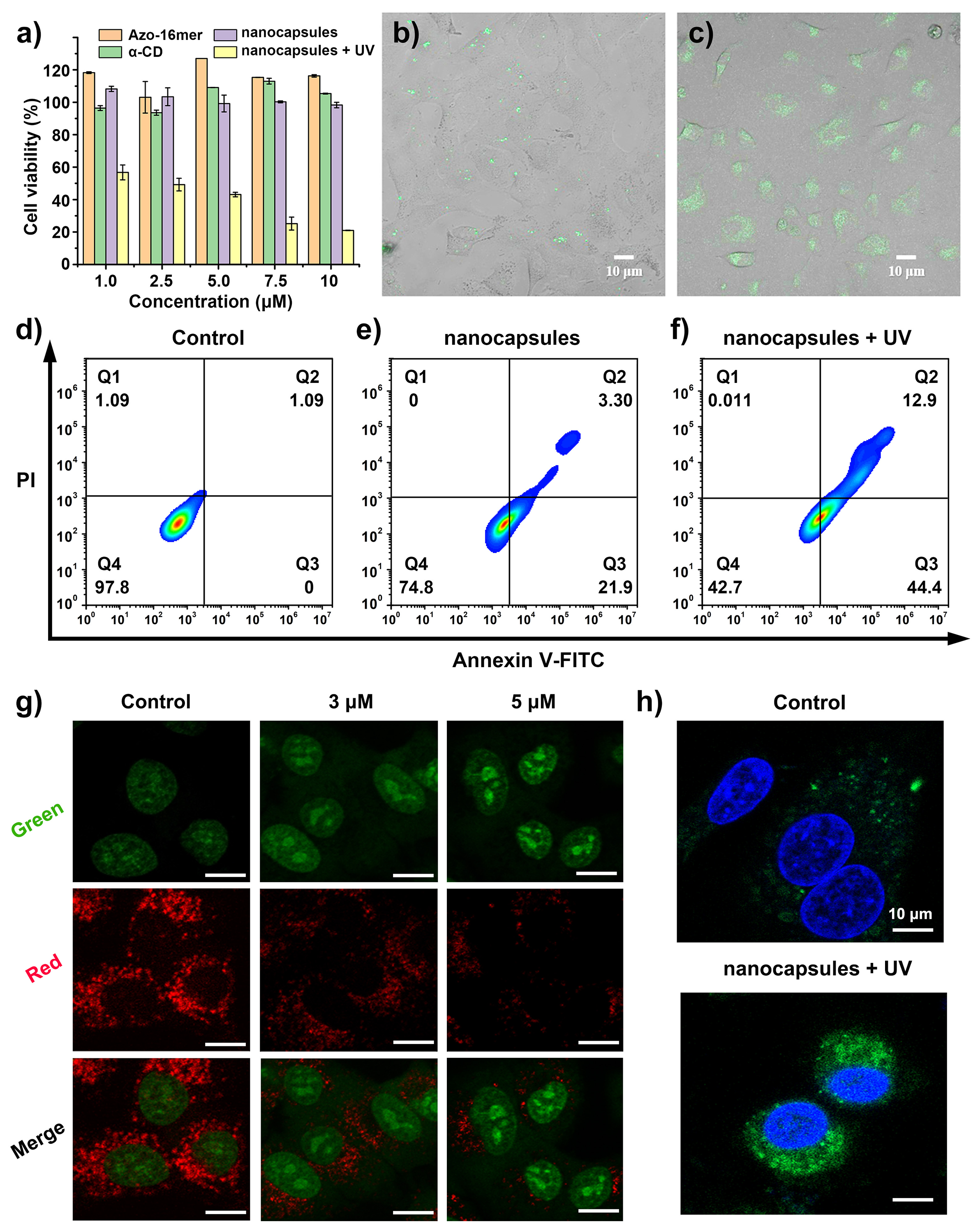 针对这一难题,研究团队创新性地设计了一种光响应的离子通道递送系统。该系统核心由一种偶氮苯修饰的喹啉螺旋体(作为人工质子通道)和α-环糊精通过主客体作用自组装形成超分子纳米胶囊。该纳米胶囊可通过内吞作用轻松进入肿瘤细胞,并在紫外光照射下发生解组装,释放出人工质子通道。