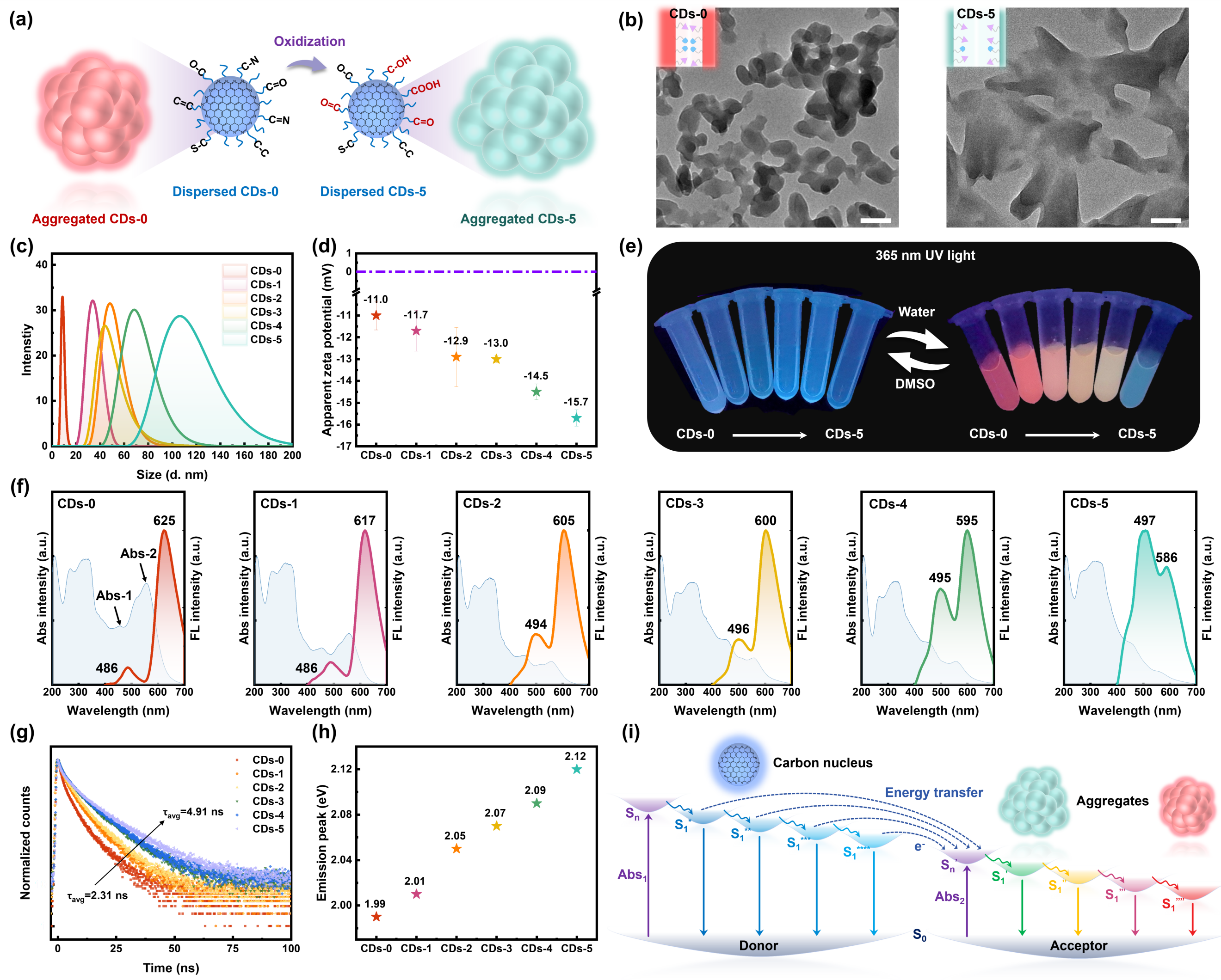 图2. 通过可控聚集设计荧光可调、多色的AIE碳点。