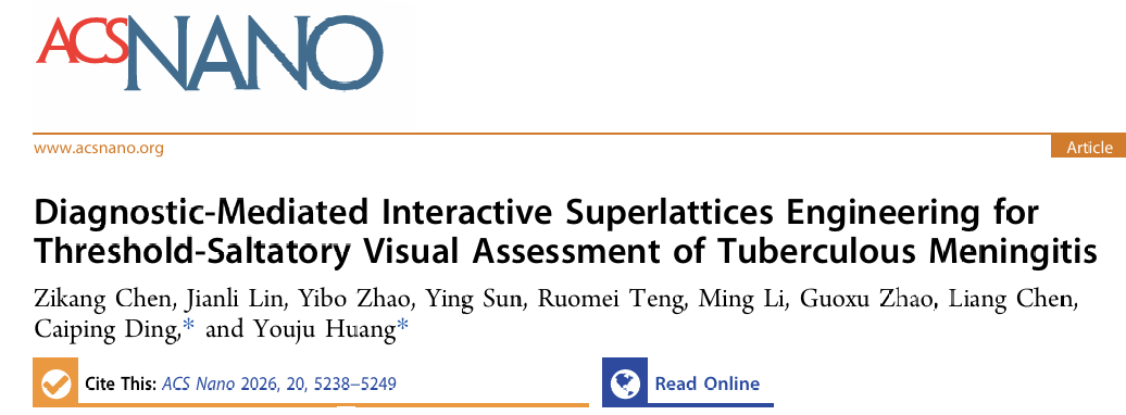 近日,jdb电子 黄又举教授团队在用于结核性脑膜炎准确评估的比色可视化生物传感器方面取得新进展。相关研究结果以“Diagnostic-Mediated Interactive Superlattices Engineering for Threshold-Saltatory Visual Assessment of Tuberculous Meningitis”为题发表在ACS Nano (Q1, IF=15.8)。DOI: 10.1021/acsnano.5c21167。